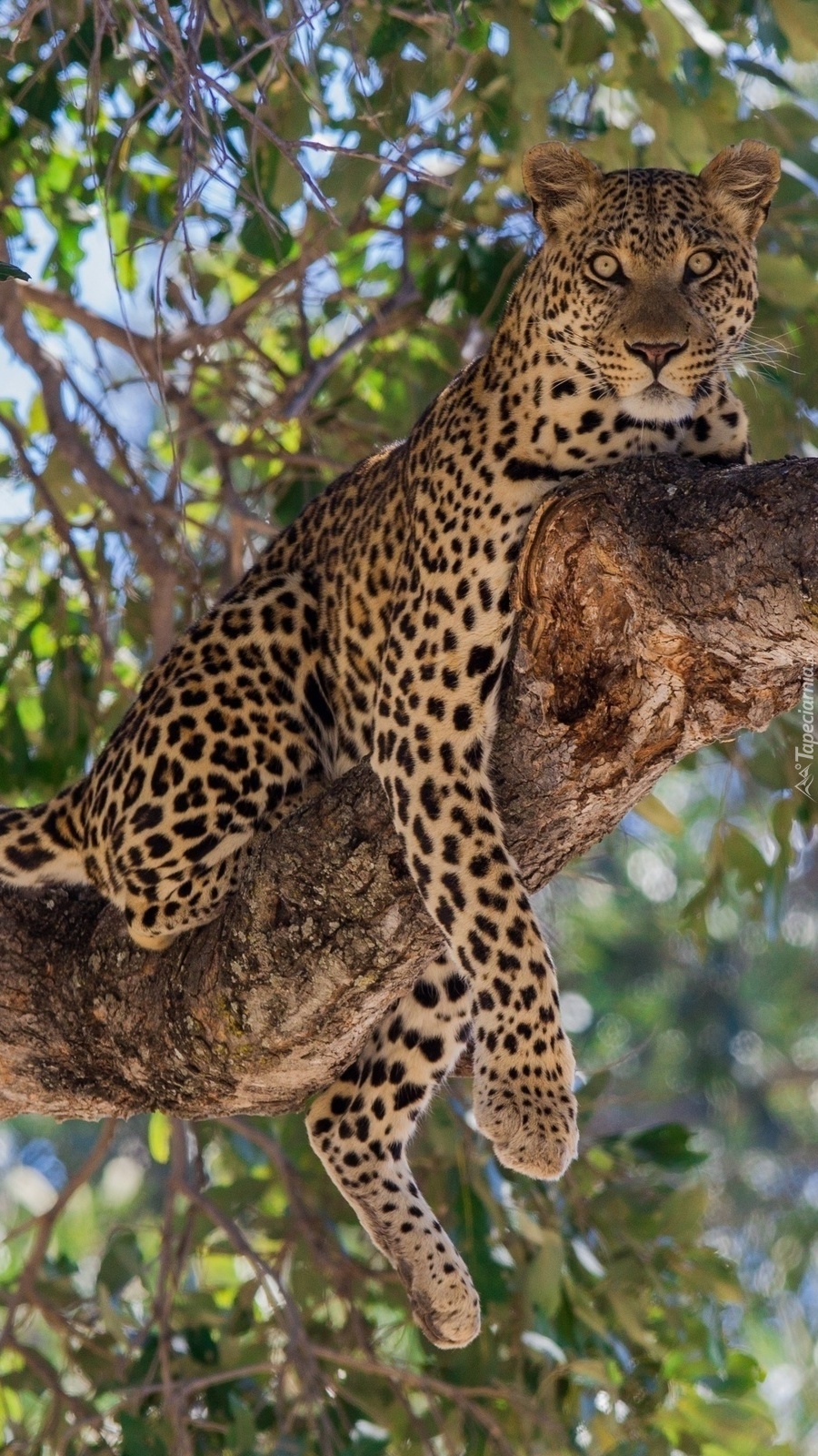Edytor tapety: Lampart na drzewie