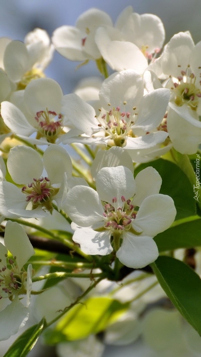 Edytor tapety: Białe kwiatki owocowego drzewa