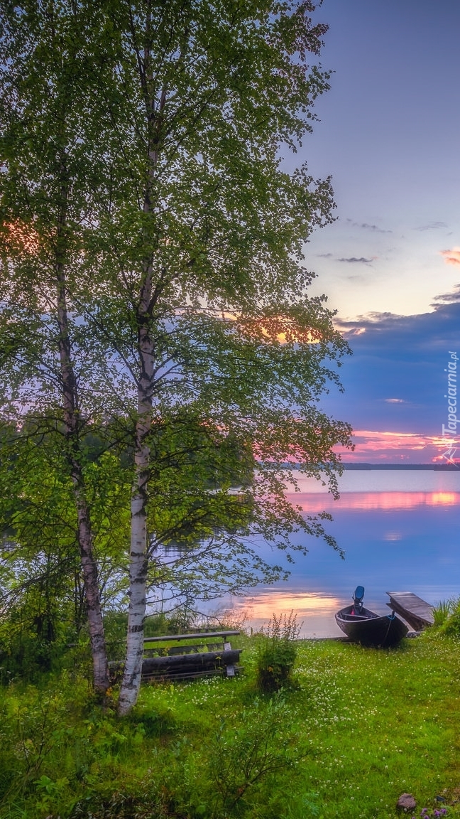 Edytor tapety: Łódka nad brzegiem jeziora Kallunkijarvi