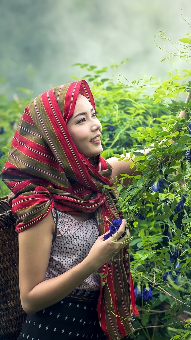 Edytor tapety: Kobieta zrywająca kwiaty