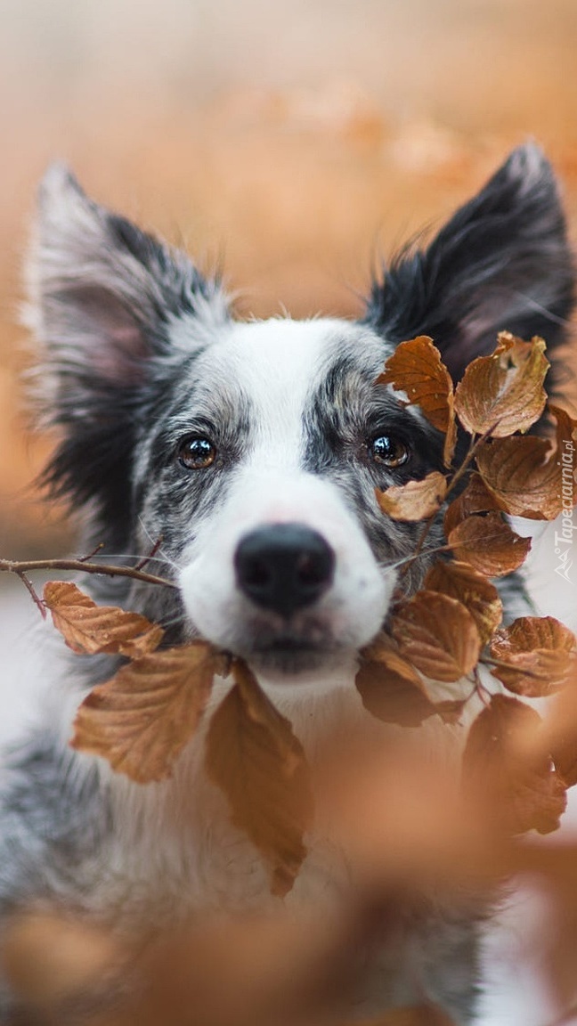 Edytor tapety: Border collie z gałązką w mordce