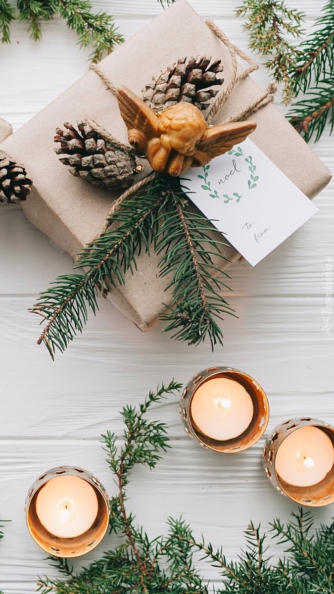 Edytor tapety: Świąteczny prezent i świeczki