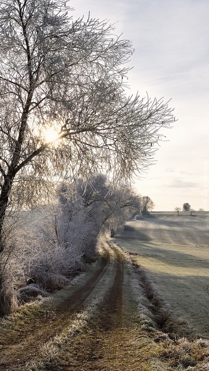 Edytor tapety: Oszronione pole i drzewa