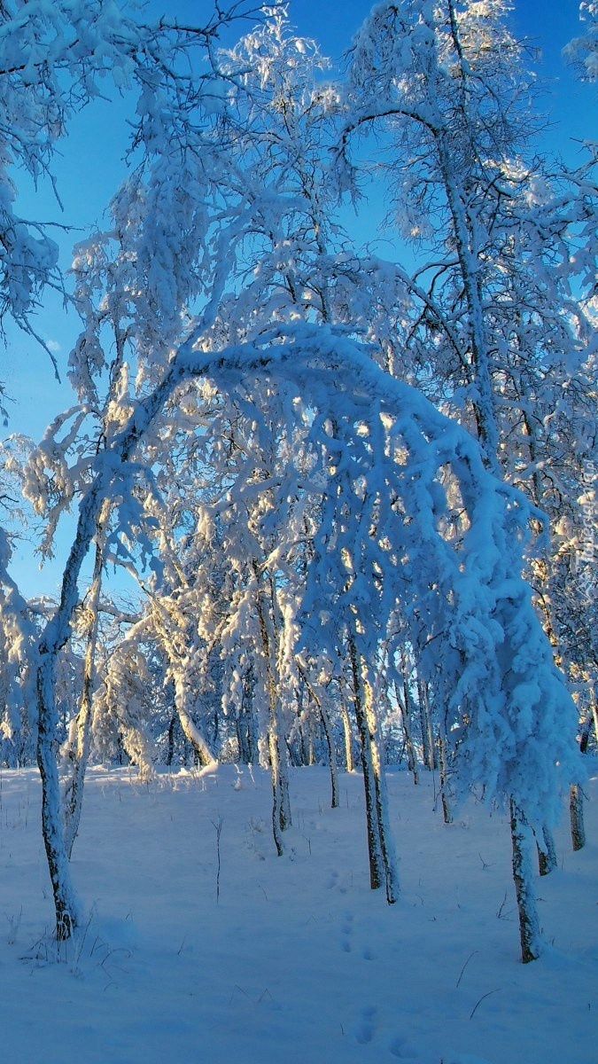 Edytor tapety: Ośnieżone drzewa o poranku