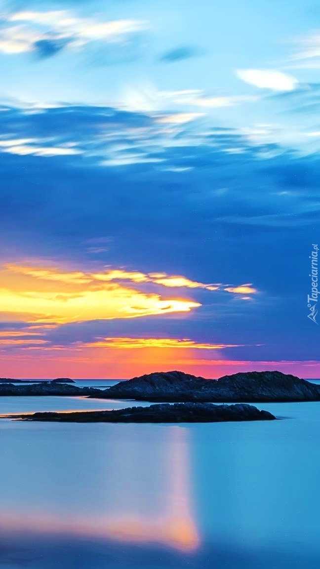 Edytor tapety: Skały na morzu o zachodzie słońca