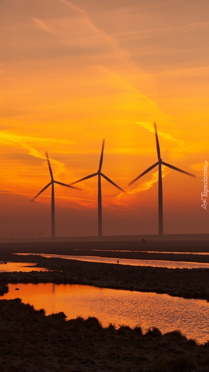 Edytor tapety: Wiatraki na tle zachodzącego słońca