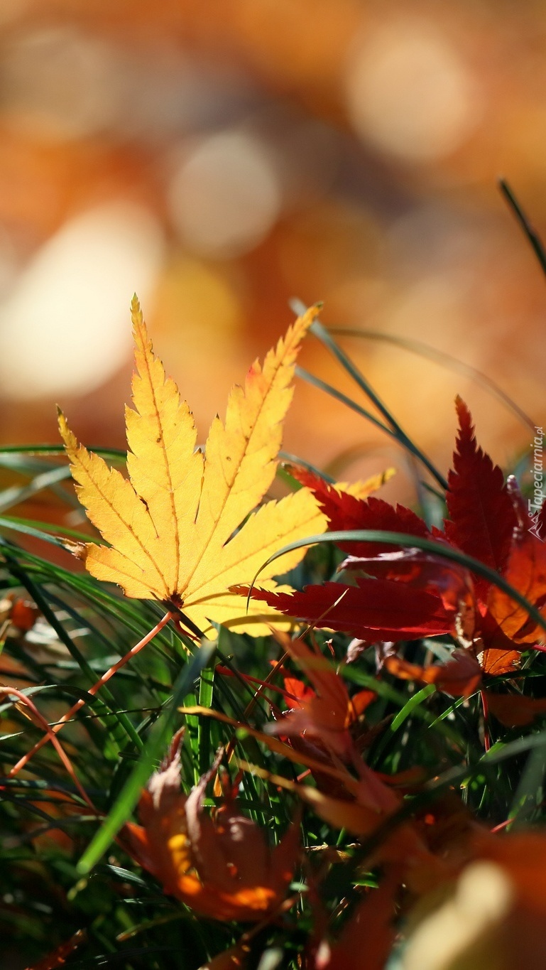 Edytor tapety: Kolorowe liście w trawie