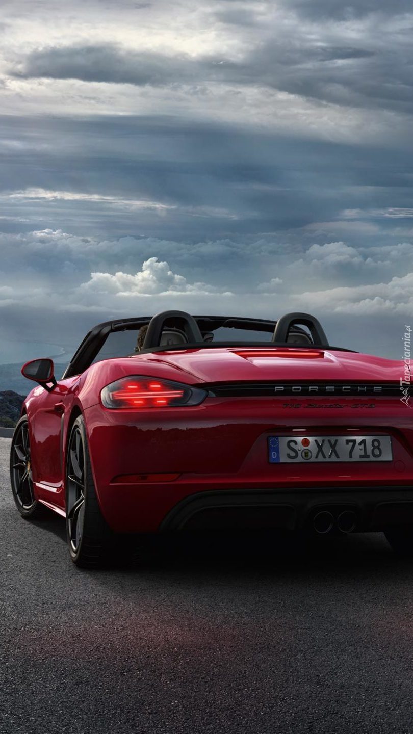 Edytor tapety: Tył czerwonego Porsche 718 Boxter GTS