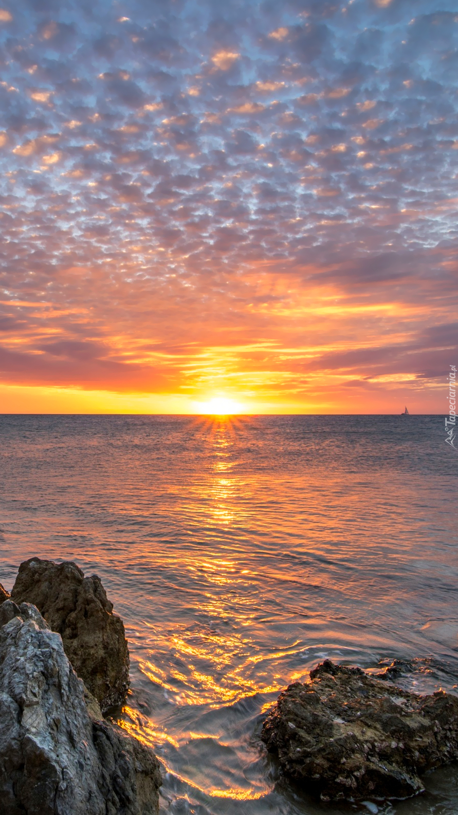 Edytor tapety: Zachód słońca nad morskimi skałami