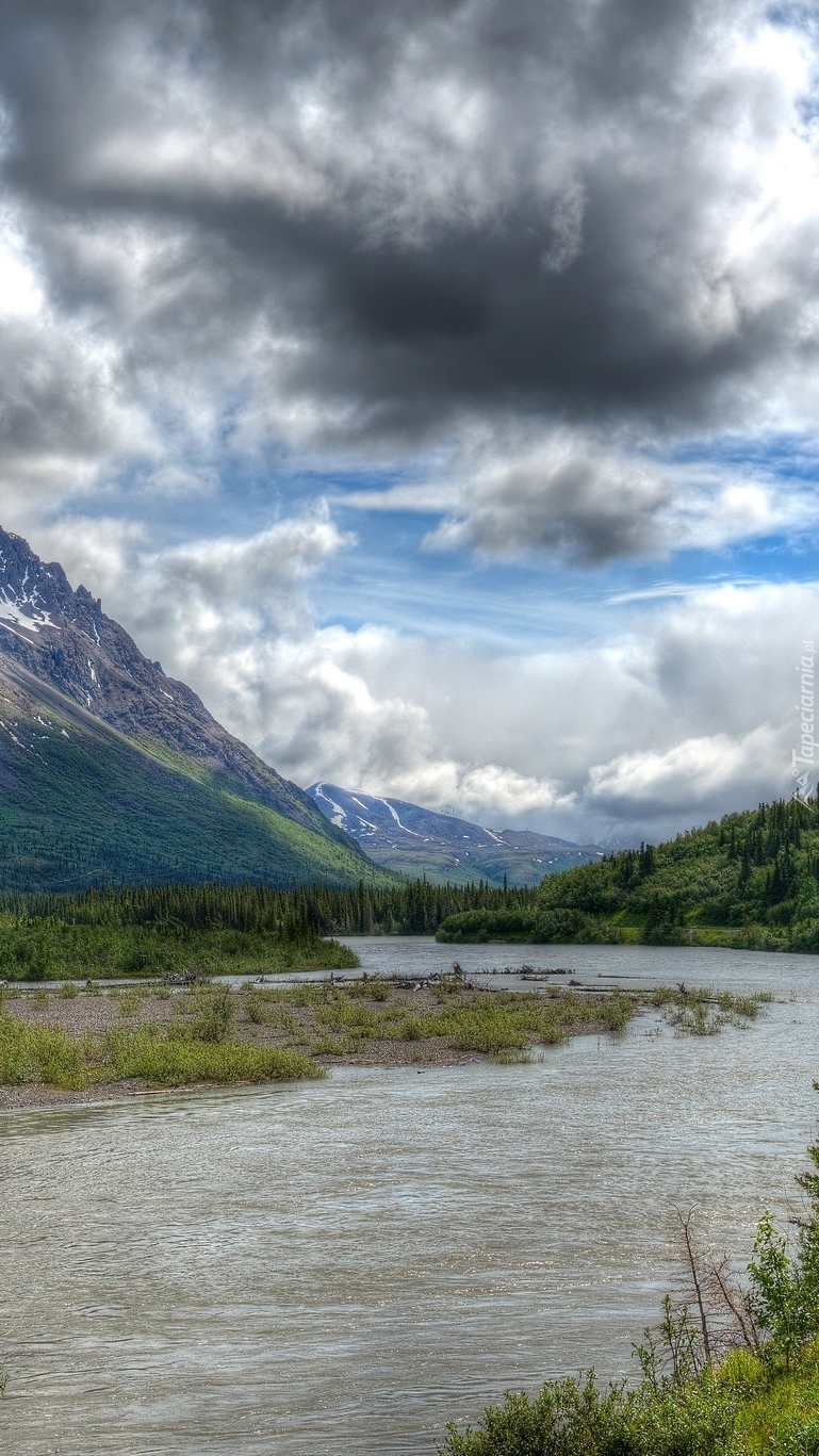 Edytor tapety: Rzeka pod ciemnymi chmurami