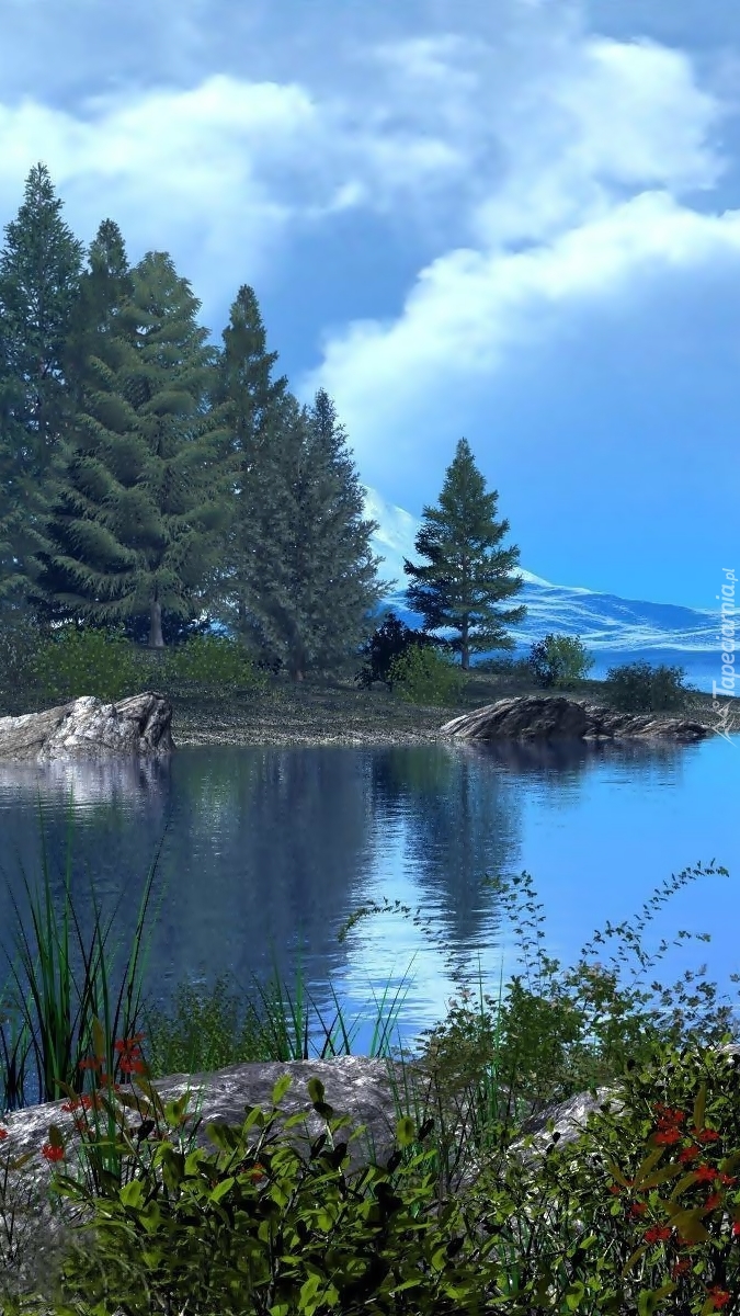Edytor tapety: Drzewa i roślinki nad jeziorem