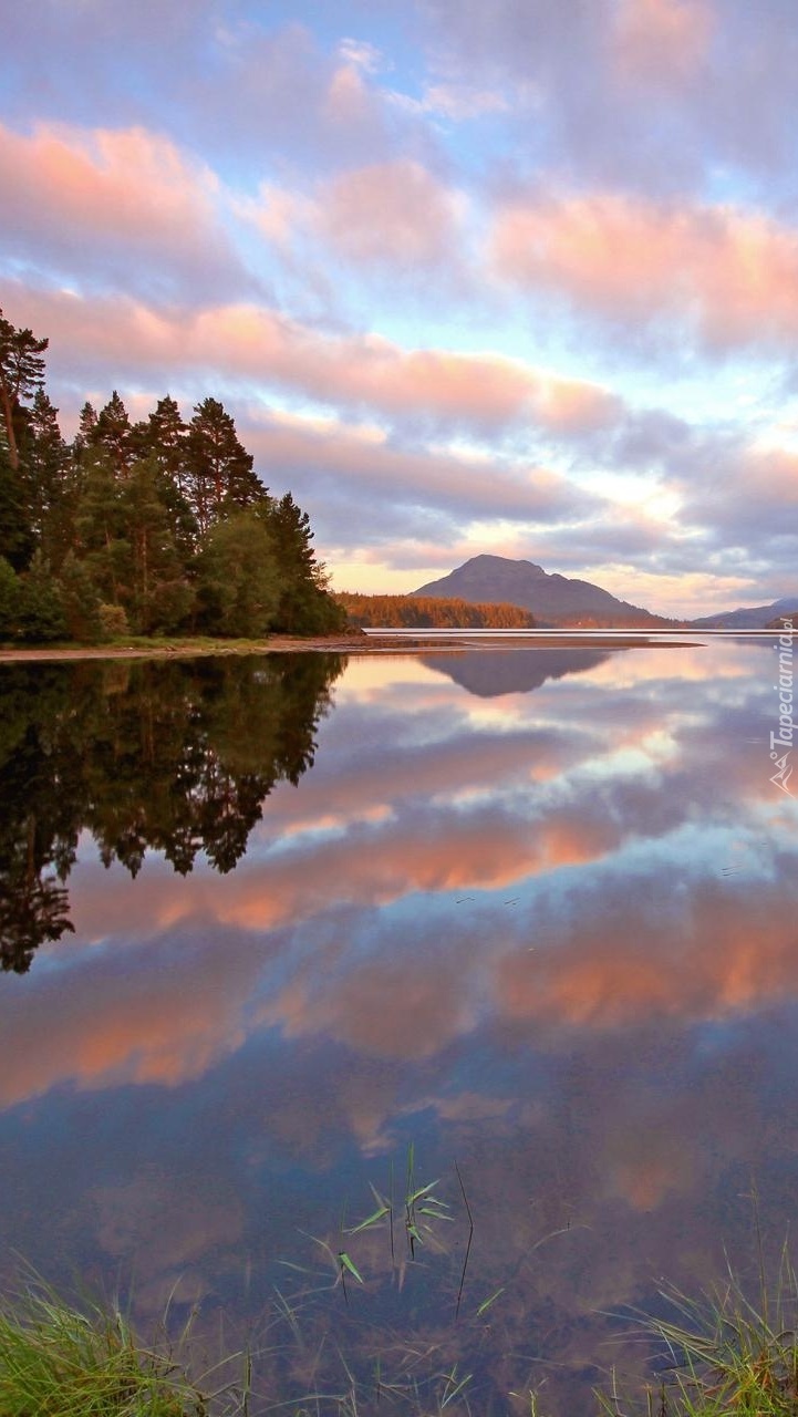 Edytor tapety: Jezioro z odbiciem chmur na tafli