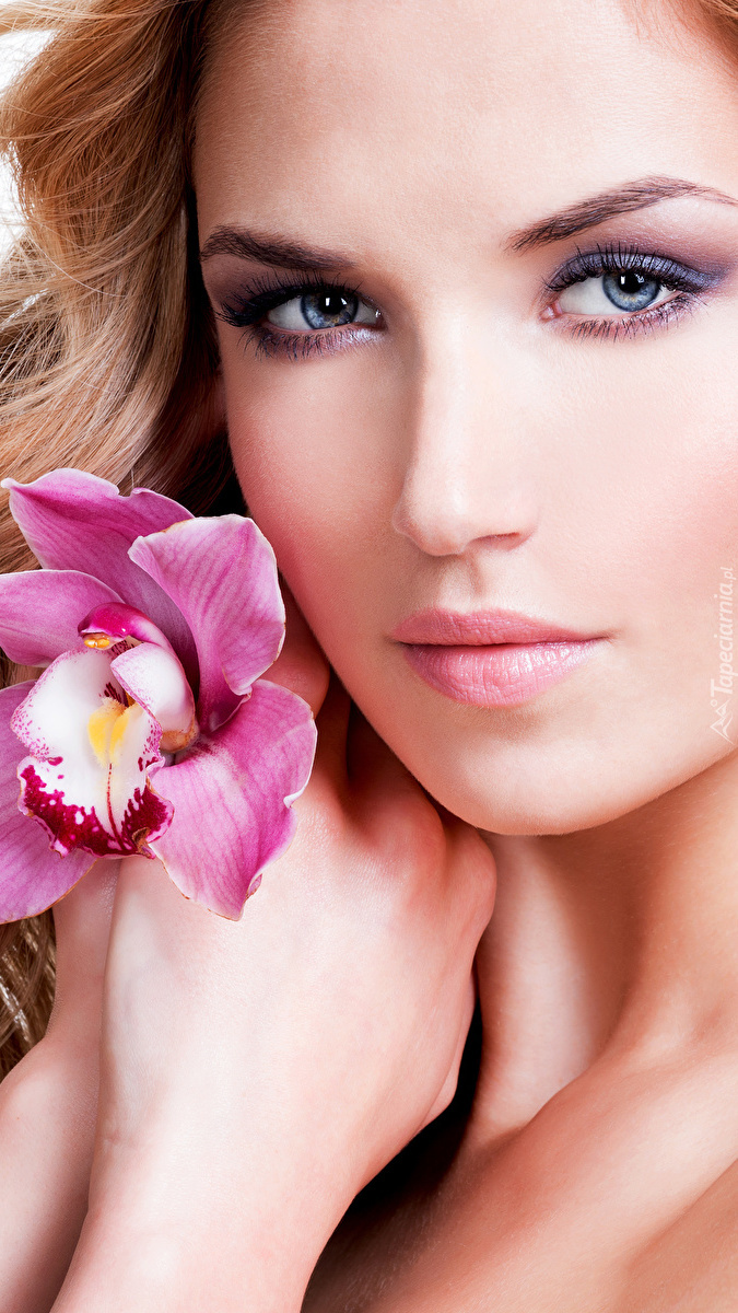 Edytor tapety: Blondynka ze storczykiem