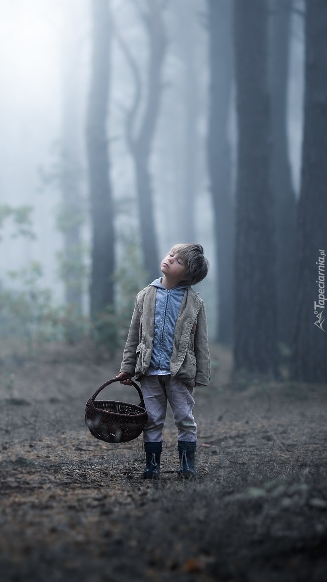 Edytor tapety: Chłopczyk z koszem w lesie