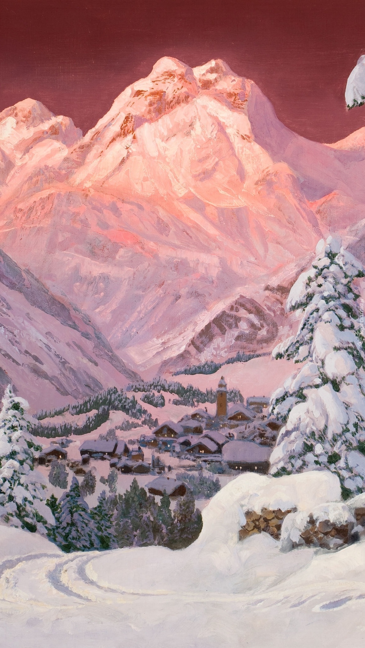 Edytor tapety: Góry zimą na obrazie Aloisa Arneggera