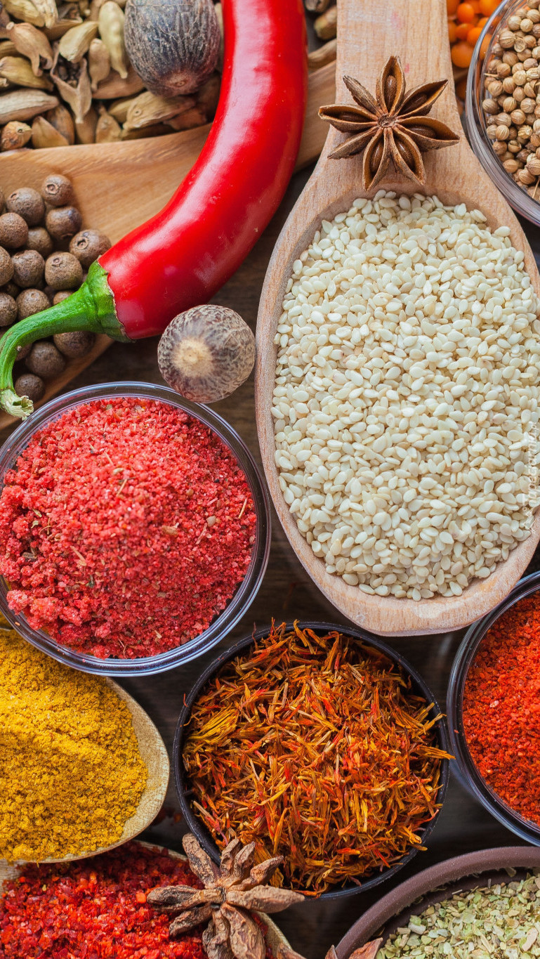 Edytor tapety: Przyprawy w miseczkach i łyżkach