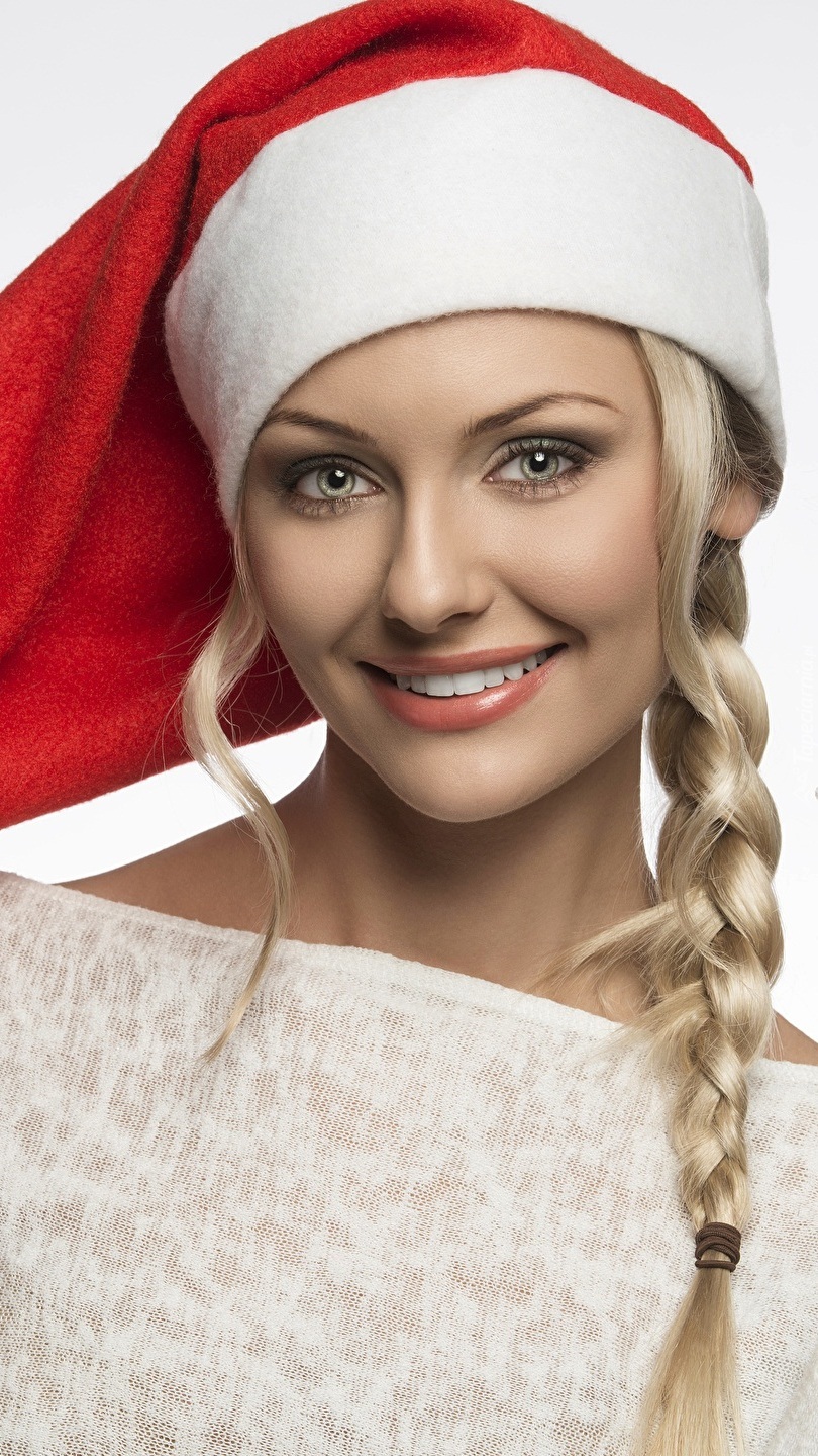 Edytor tapety: Blondynka w czapce Mikołaja