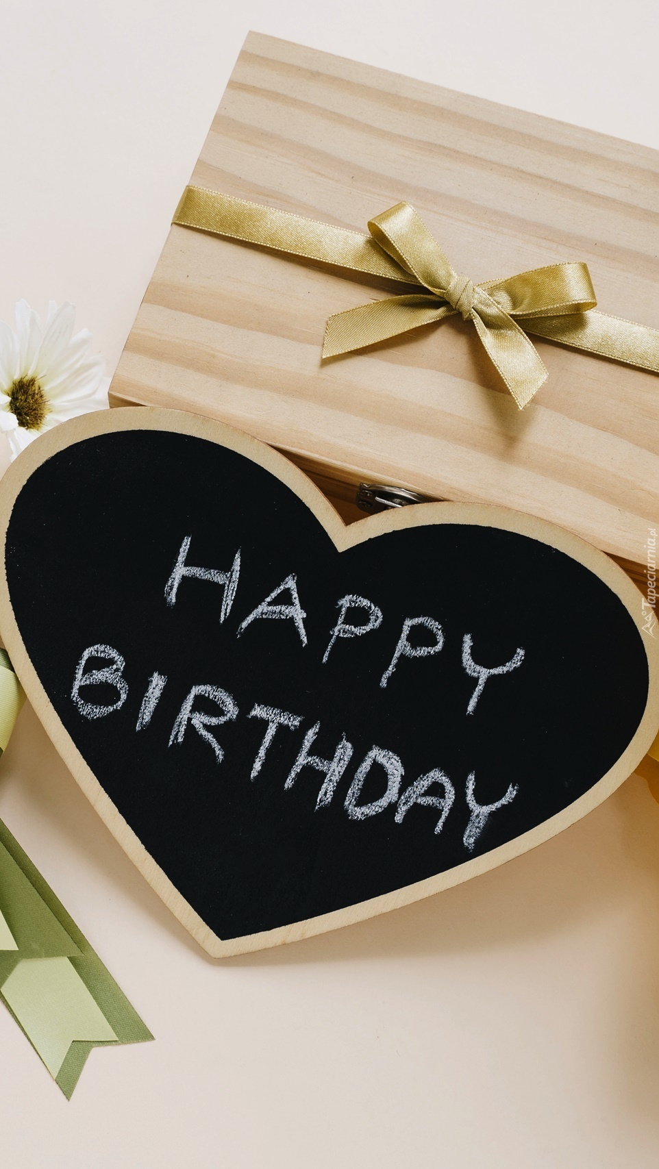 Edytor tapety: Życzenia urodzinowe w sercem i prezentem