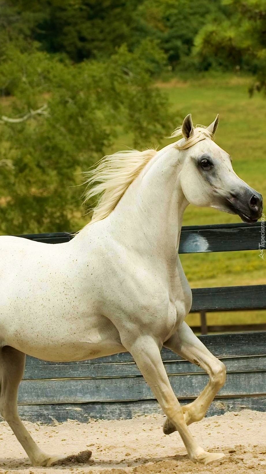 Edytor tapety: Biały koń w zagrodzie