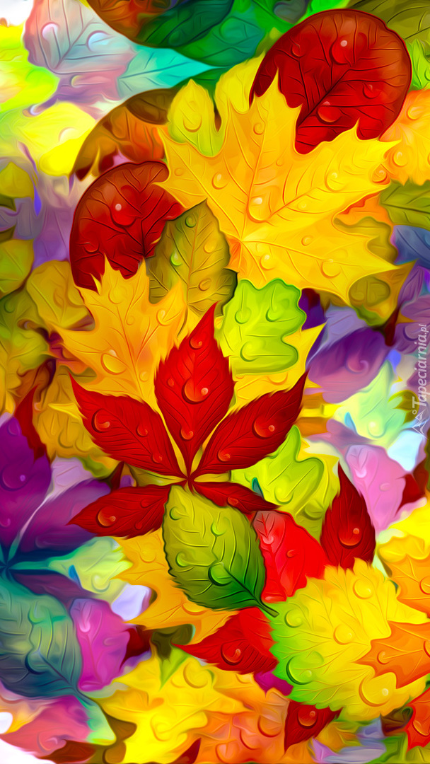 Edytor tapety: Jesienne liście w kroplach wody