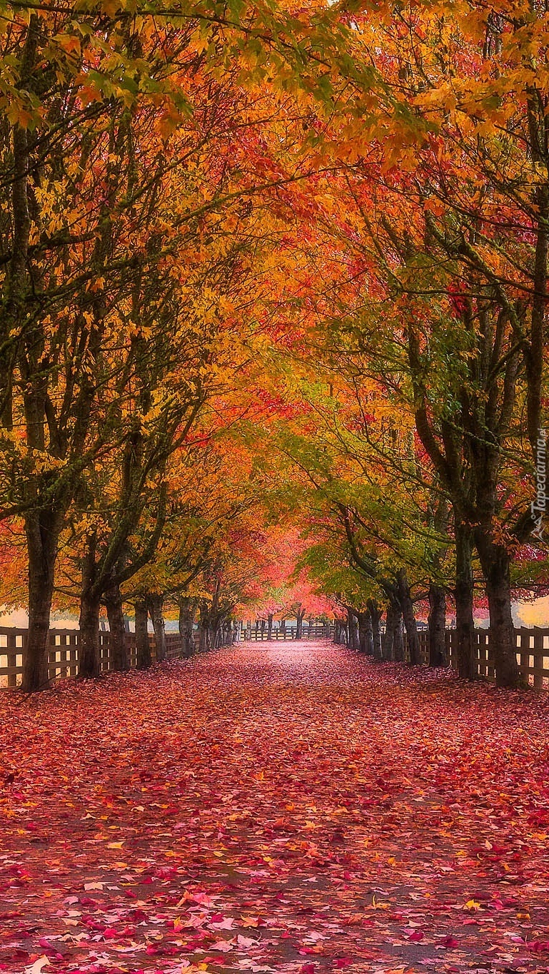 Edytor tapety: Drzewa i płot wzdłuż alejki