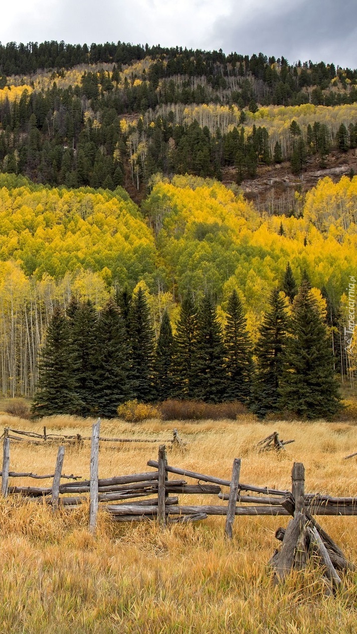 Edytor tapety: Topole osikowe i świerki na wzgórzach