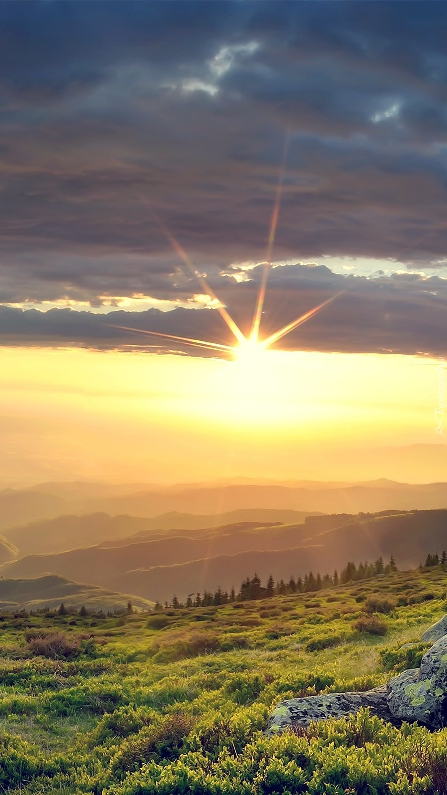 Edytor tapety: Promienie słońca pomiędzy ciemnymi chmurami