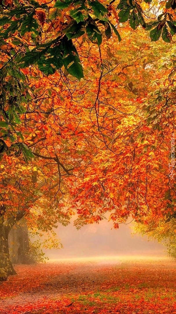 Edytor tapety: Drzewa jesienią we mgle