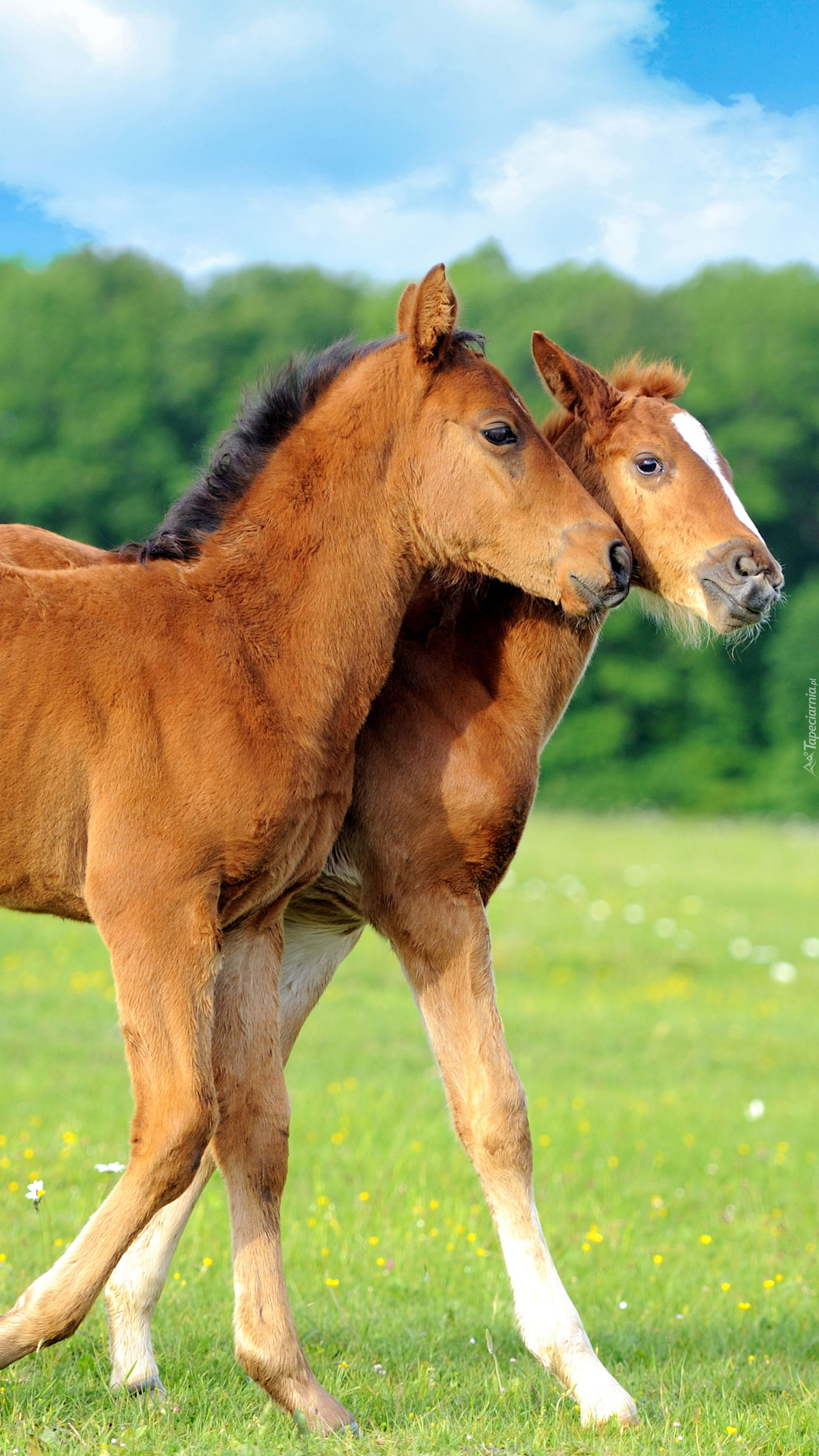 Edytor tapety: Dwa źrebaki na łące