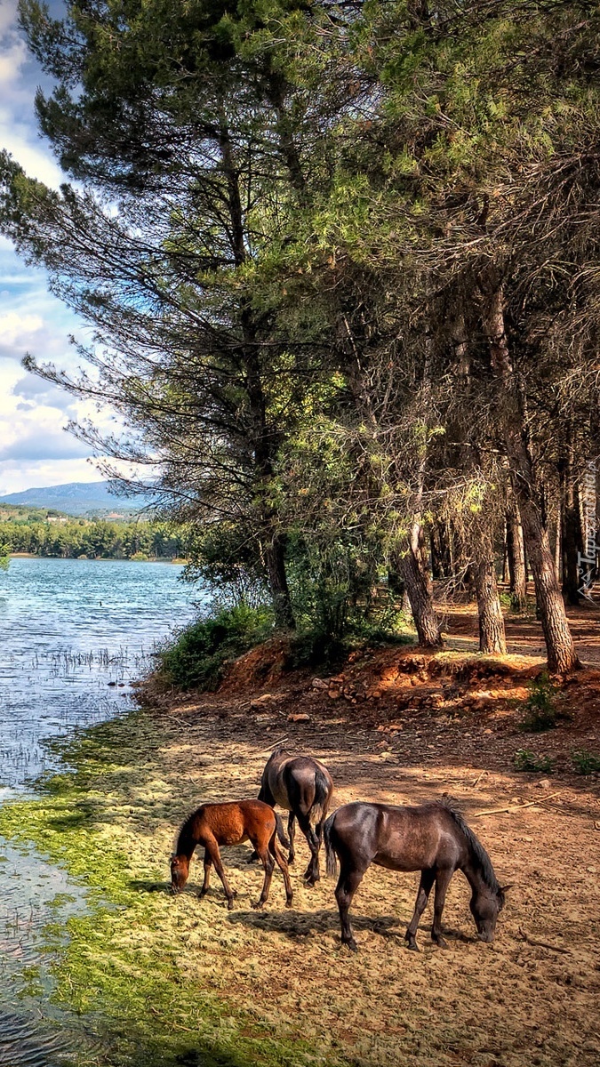 Edytor tapety: Konie nad rzeką