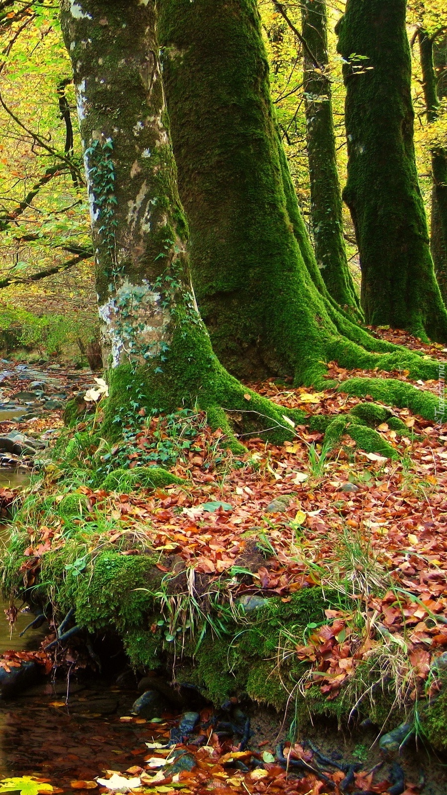 Edytor tapety: Omszałe drzewa nad rzeczką