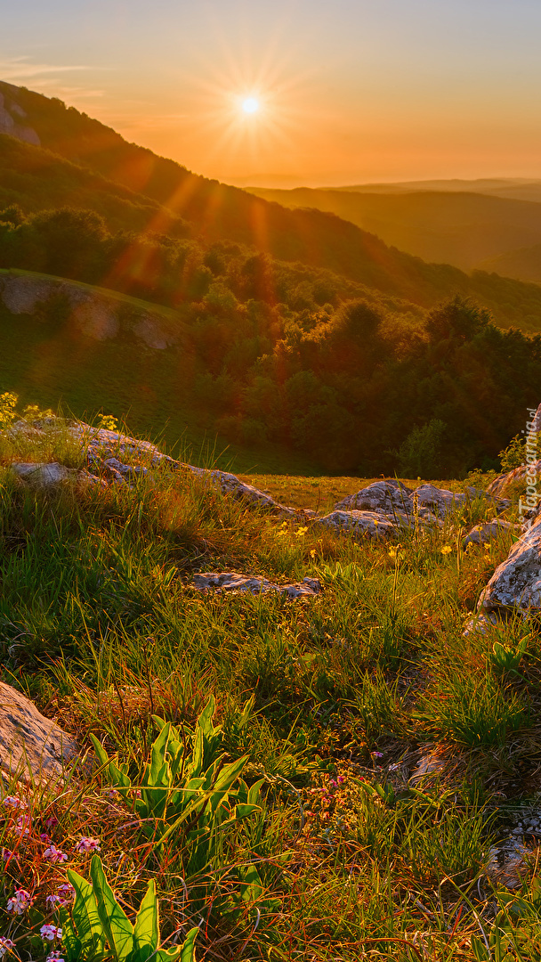 Edytor tapety: Góry i skały w promykach słońca