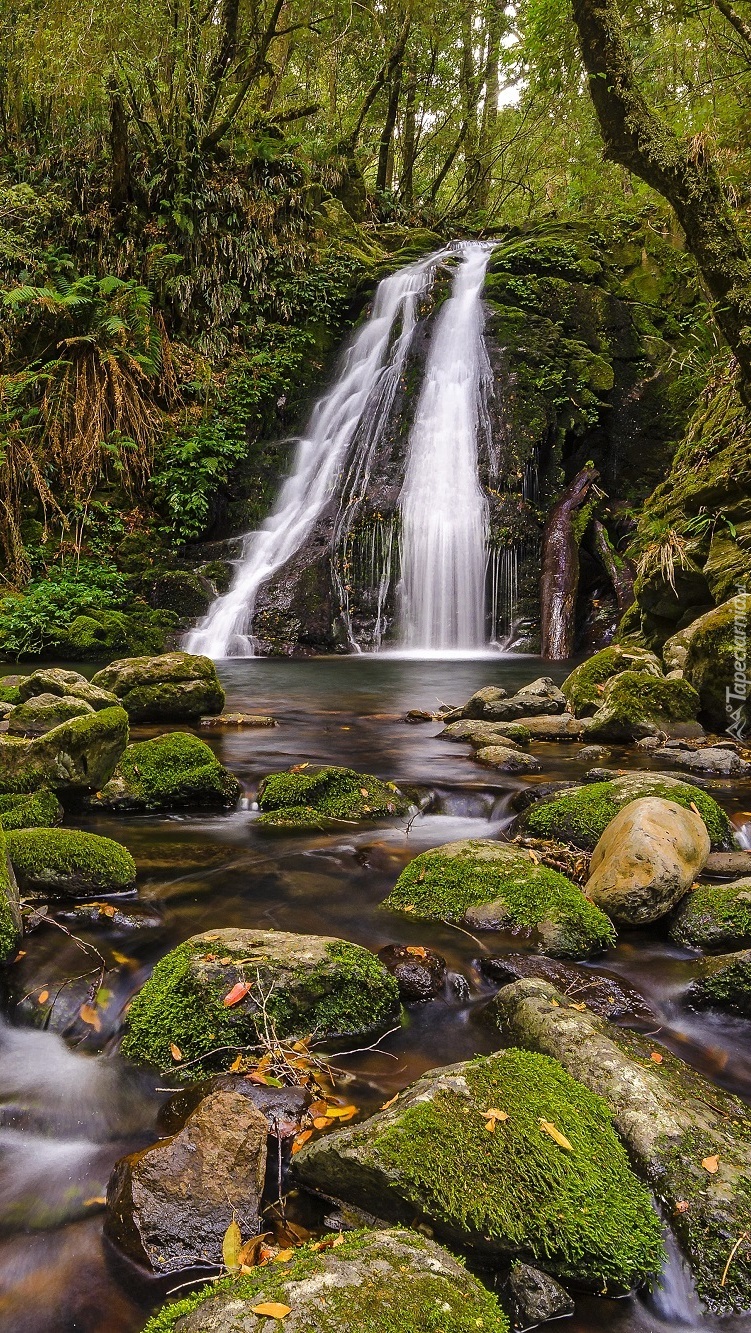 Edytor tapety: Omszałe kamienie w rzece przy wodospadzie