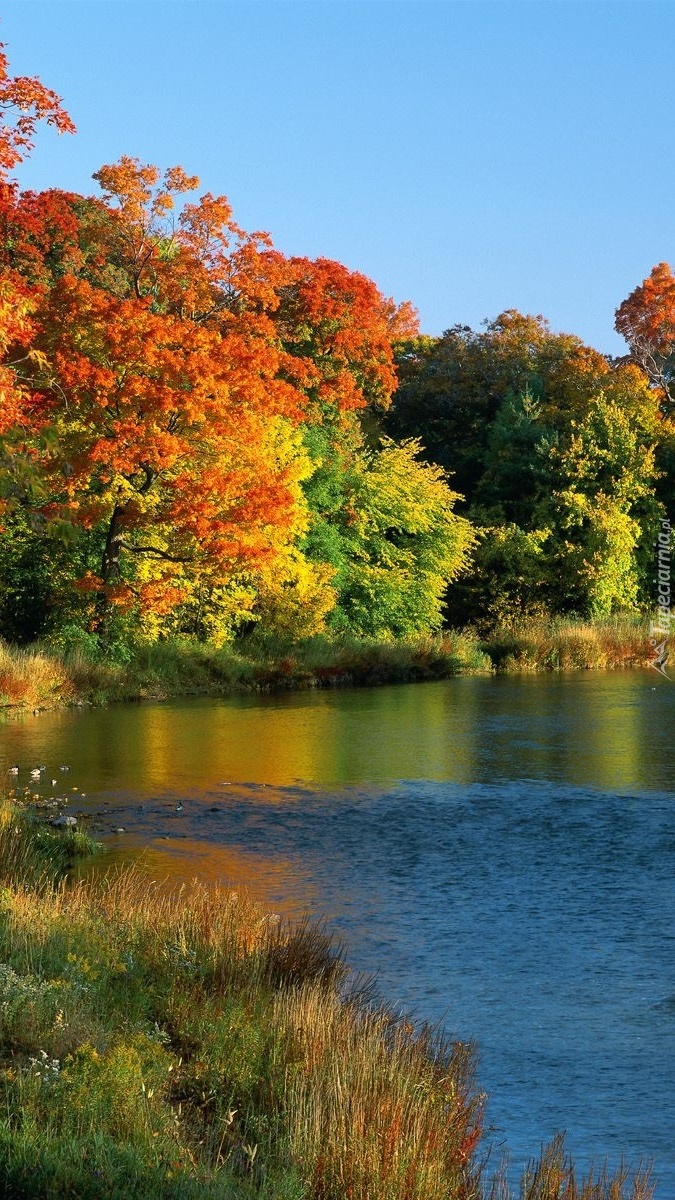 Edytor tapety: Kolorowe drzewa nad rzeką