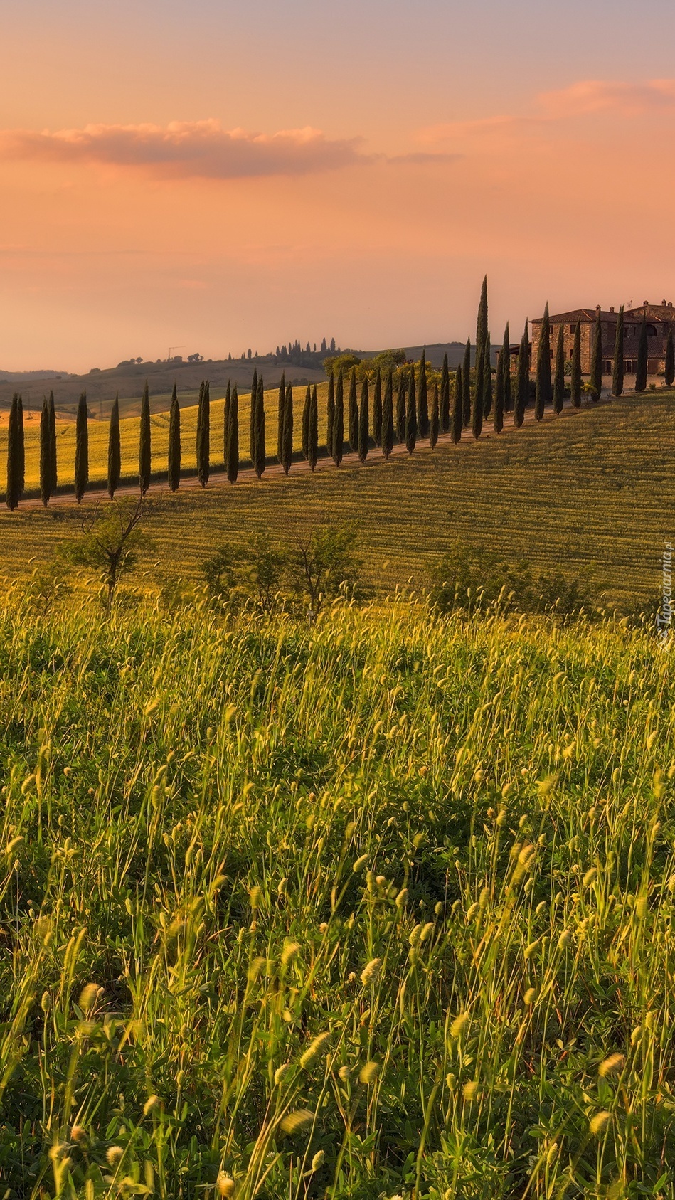 Edytor tapety: Cyprysy wzdłuż drogi