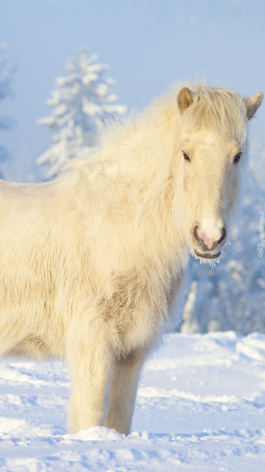 Edytor tapety: Biały koń w śniegu