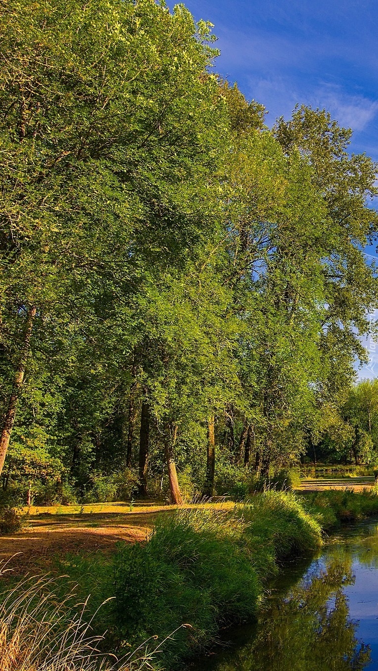 Edytor tapety: Drzewa nad rzeką w parku