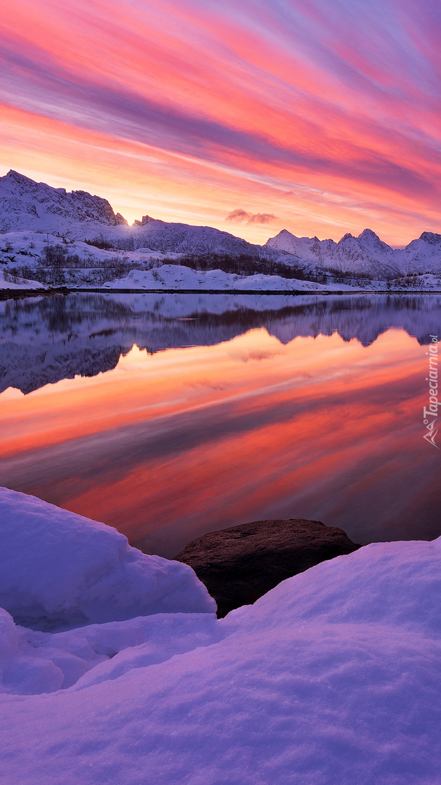 Edytor tapety: Jezioro pod kolorowym niebem