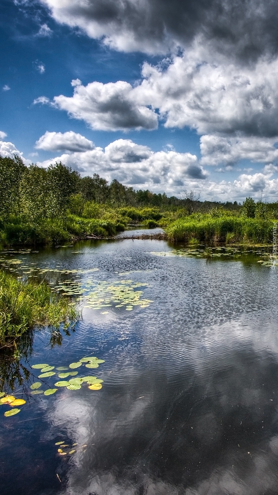 Edytor tapety: Brzegi rzeki porośniete zaroślami