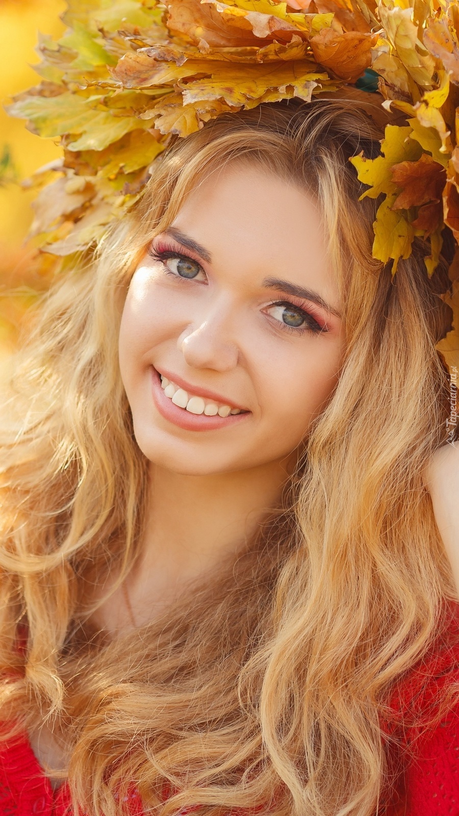 Edytor tapety: Dziewczyna w wianku z jesiennych liści