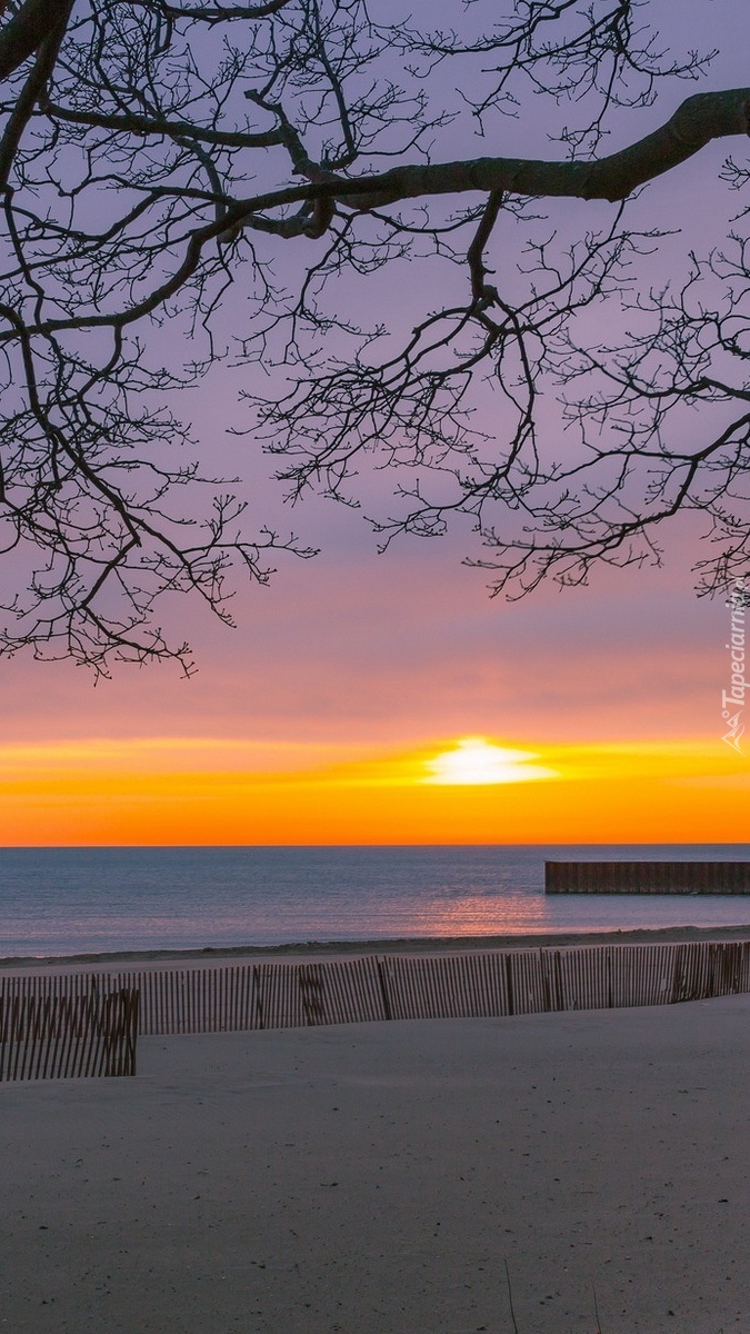 Edytor tapety: Zachód słońca nad morską plażą