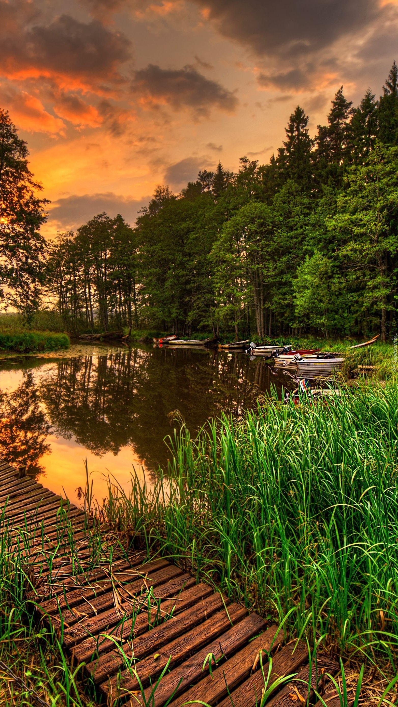 Edytor tapety: Pomost na jeziorze w szuwarach