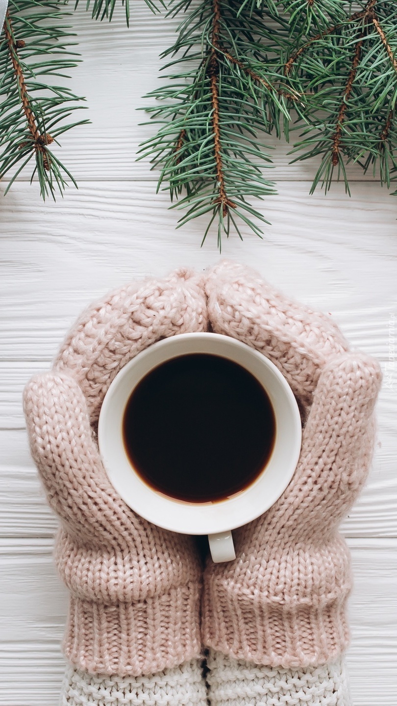 Edytor tapety: Ciepłe rękawiczki i filiżanka kawy