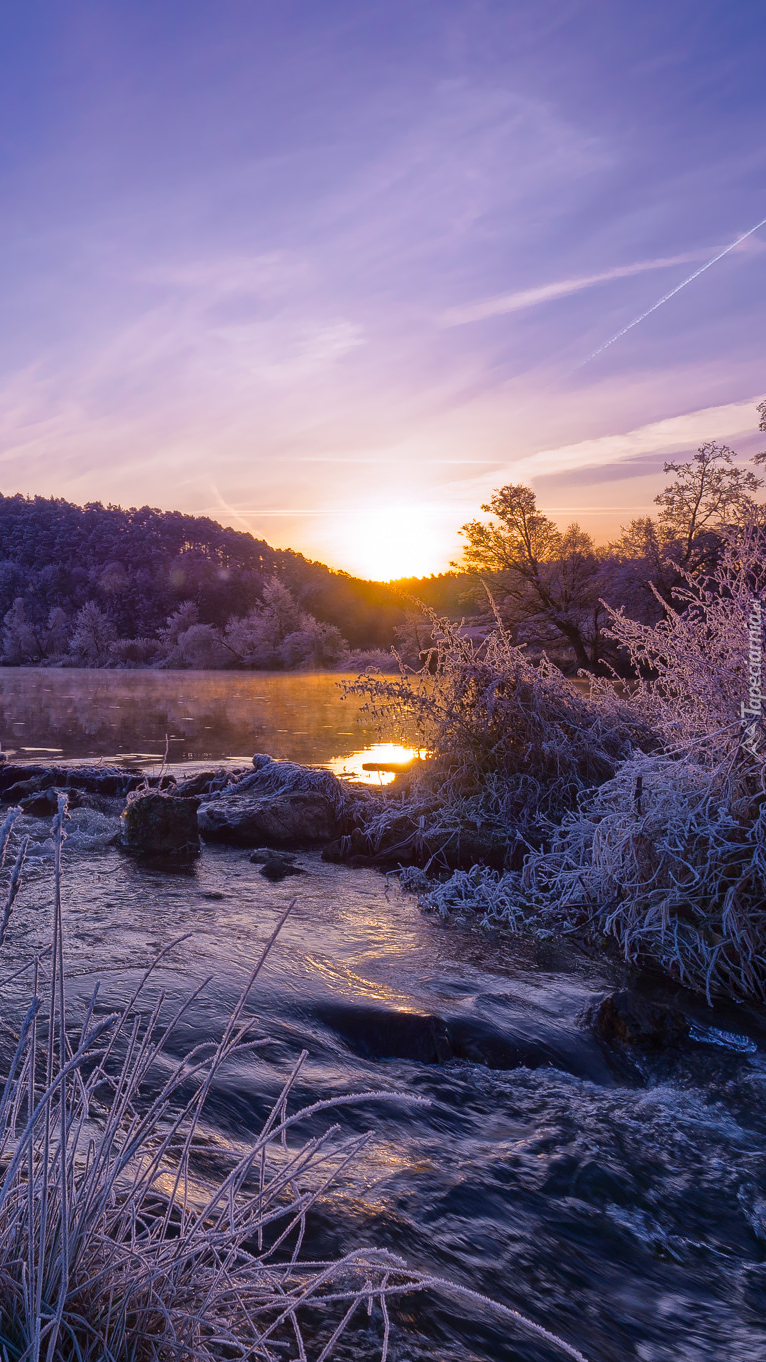 Edytor tapety: Oszronione drzewa nad rzeką Naab