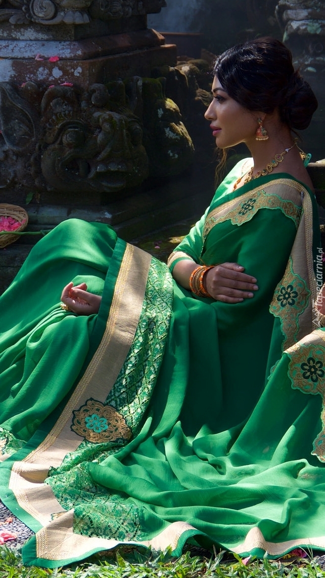 Edytor tapety: Kobieta w zielonej sukni