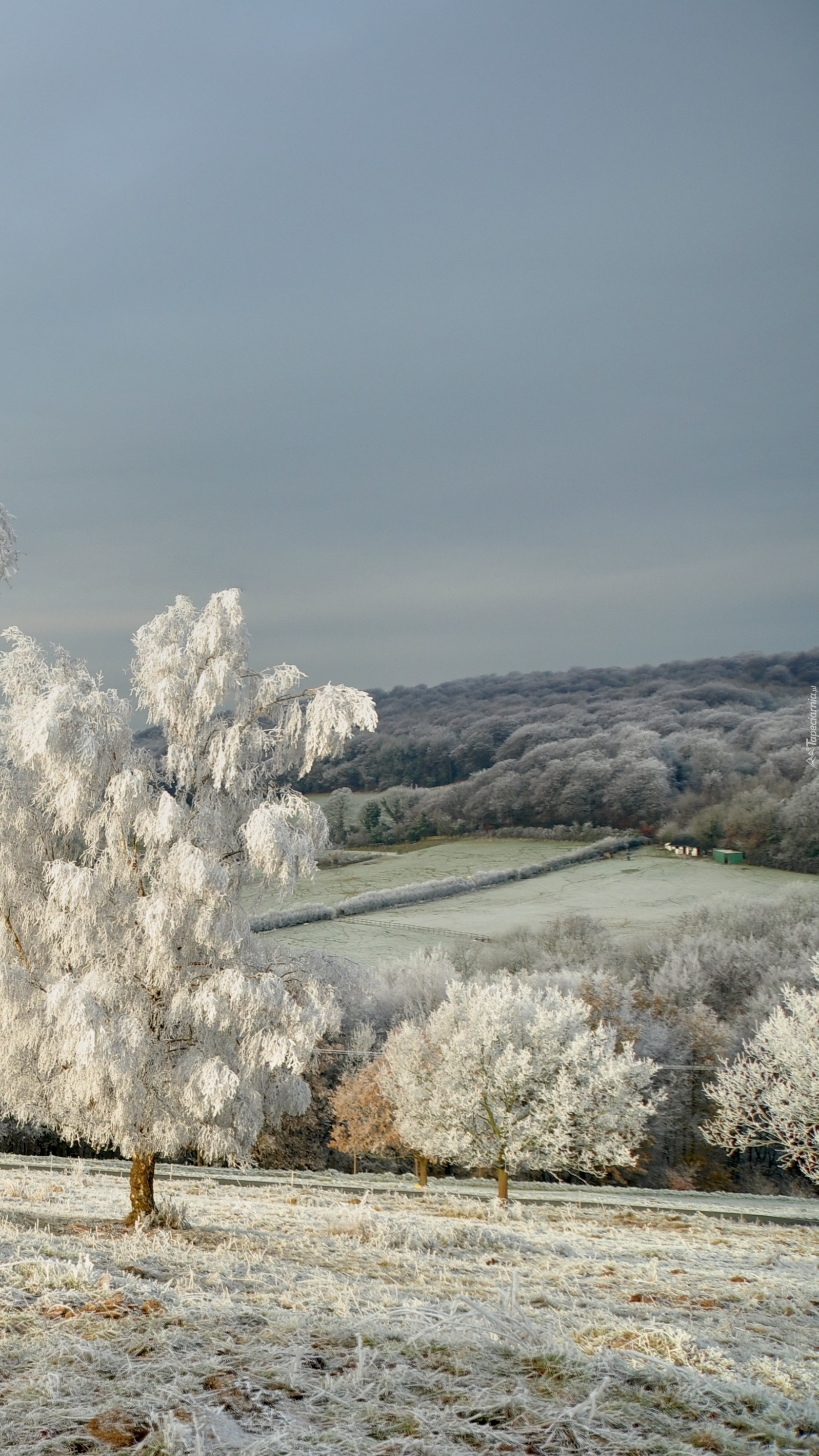 Edytor tapety: Oszronione drzewa i pola