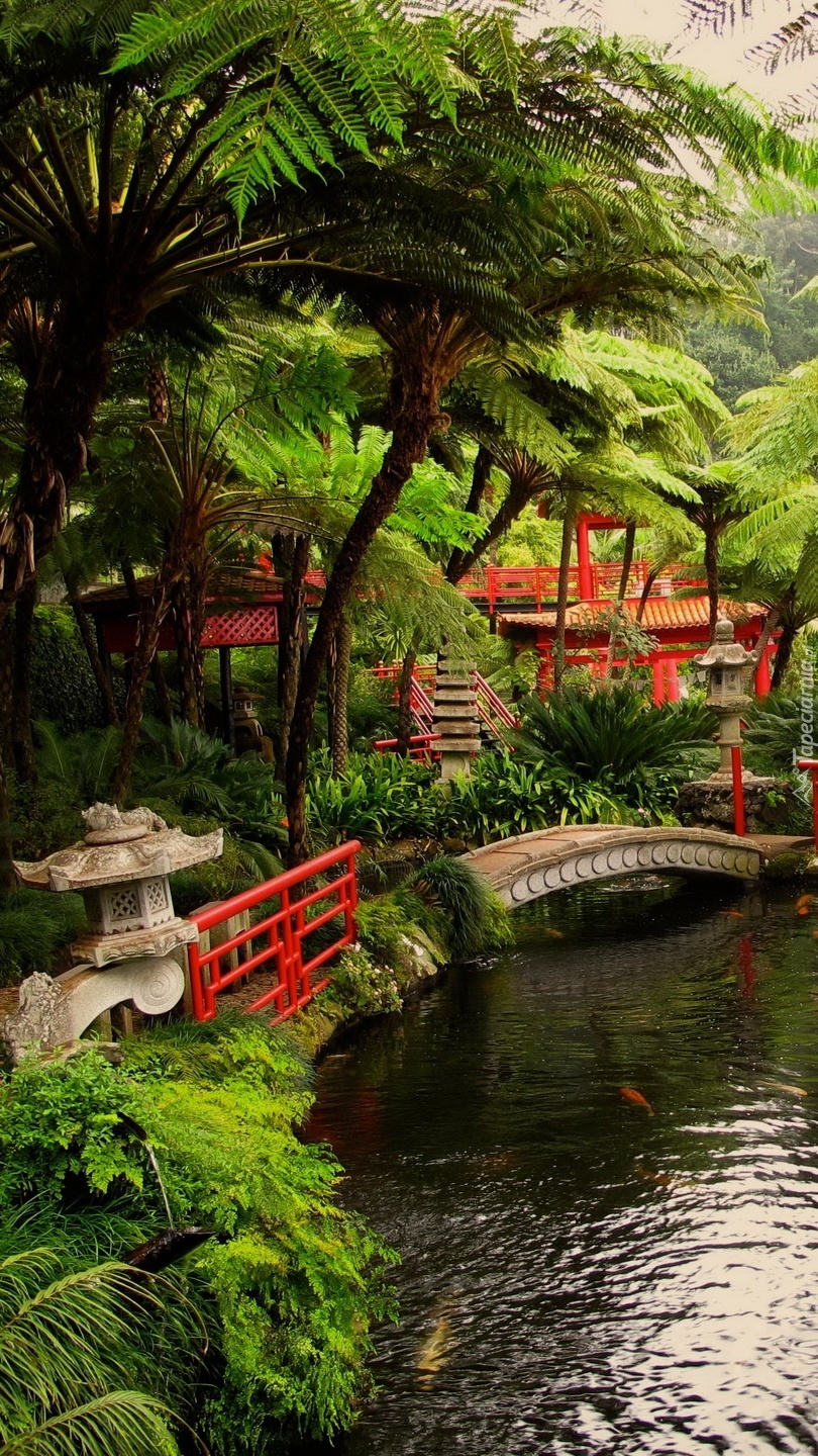 Edytor tapety: Staw i mostek w ogrodzie japońskim
