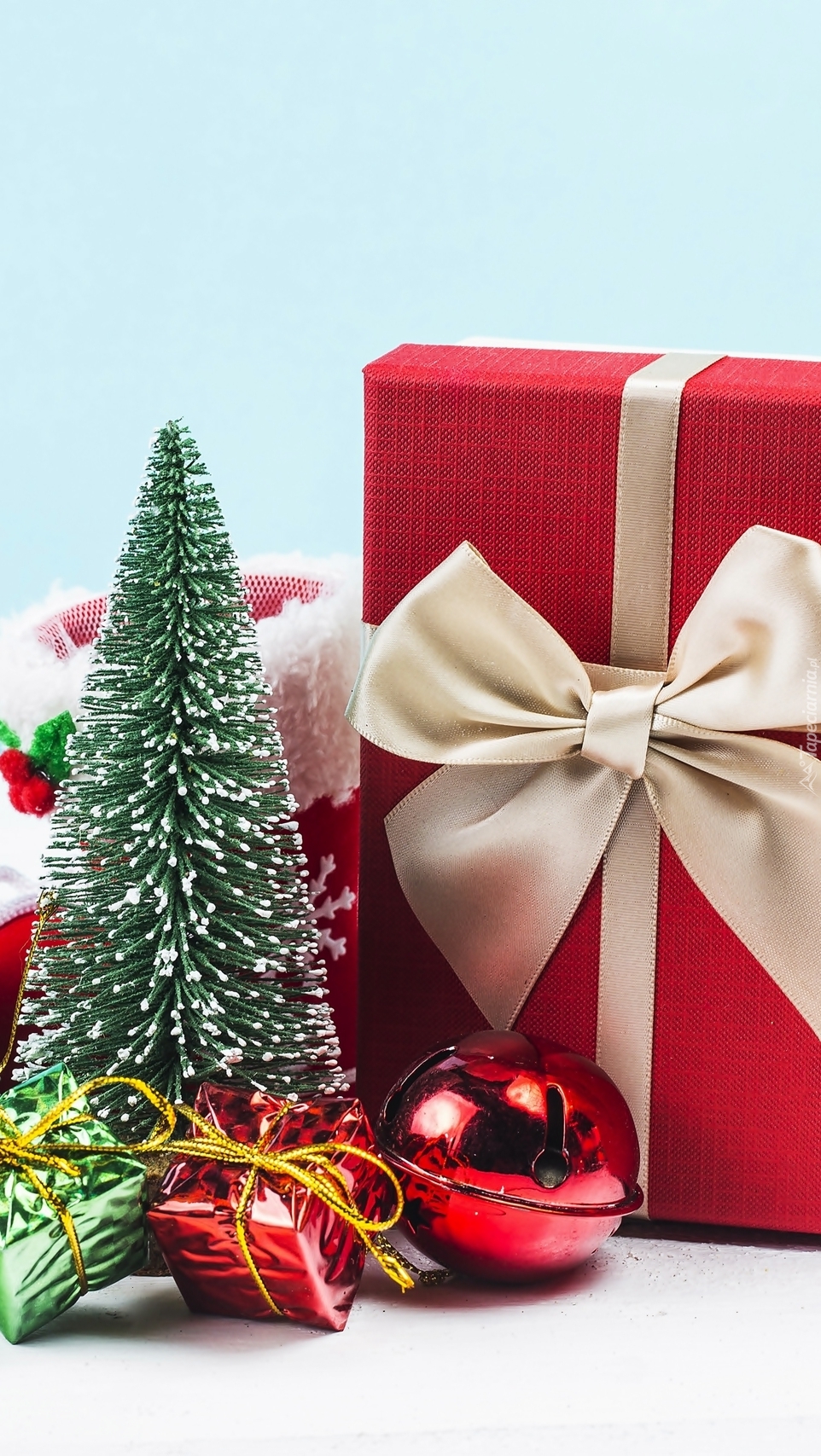Edytor tapety: Prezent obok ozdób choinkowych