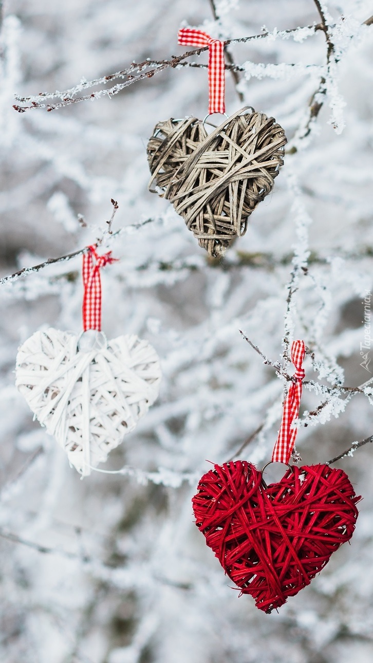 Edytor tapety: Serca na oszronionych gałązkach