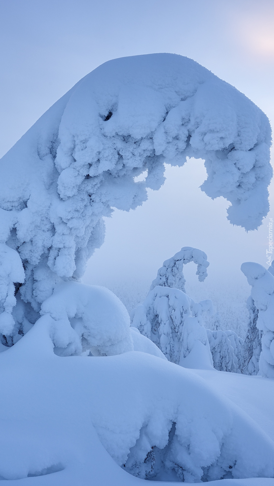 Edytor tapety: Pochylone drzewo w śniegu